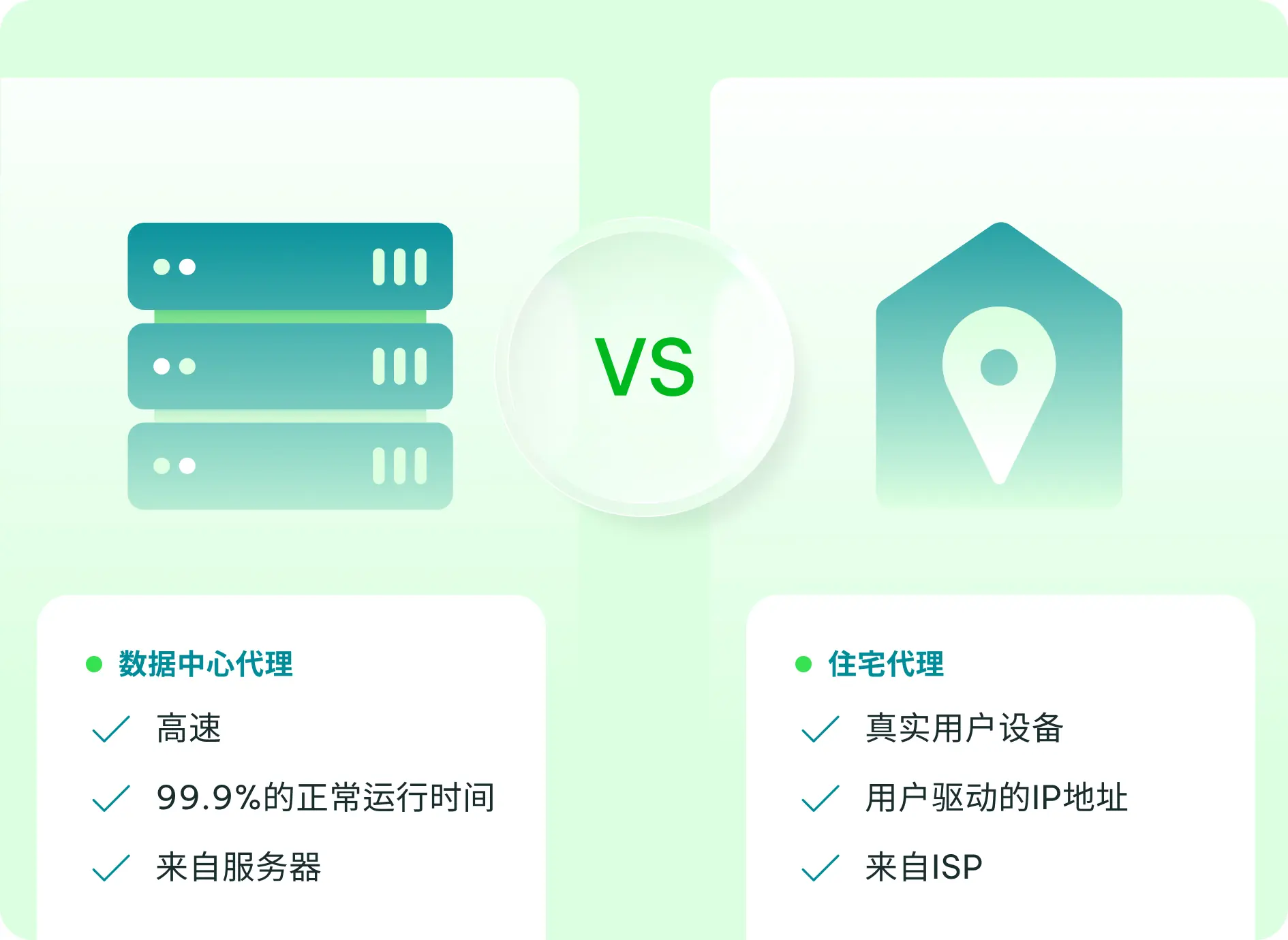 数据中心代理广泛应用于对速度、稳定性和成本控制方面有较高要求的场景。尽管其地理定位功能弱于住宅代理,但在无需精准地理定位的情况下,可用于网页抓取、广告验证、品牌保护等多种场景。