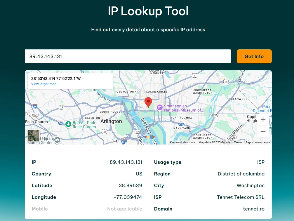 12. 访问IPRoyal IP查询 页面或类似网站,验证配置是否正常运行。