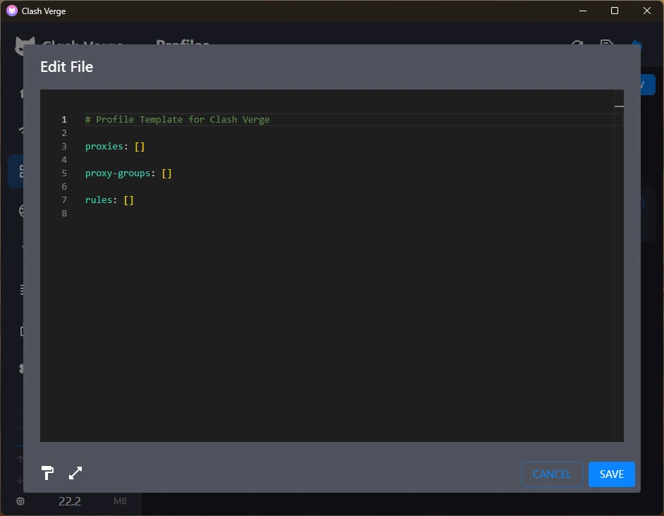 9. 再打开Clash Verge Rev,按以下格式插入IPRoyal控制面板上显示的代理服务器信息: