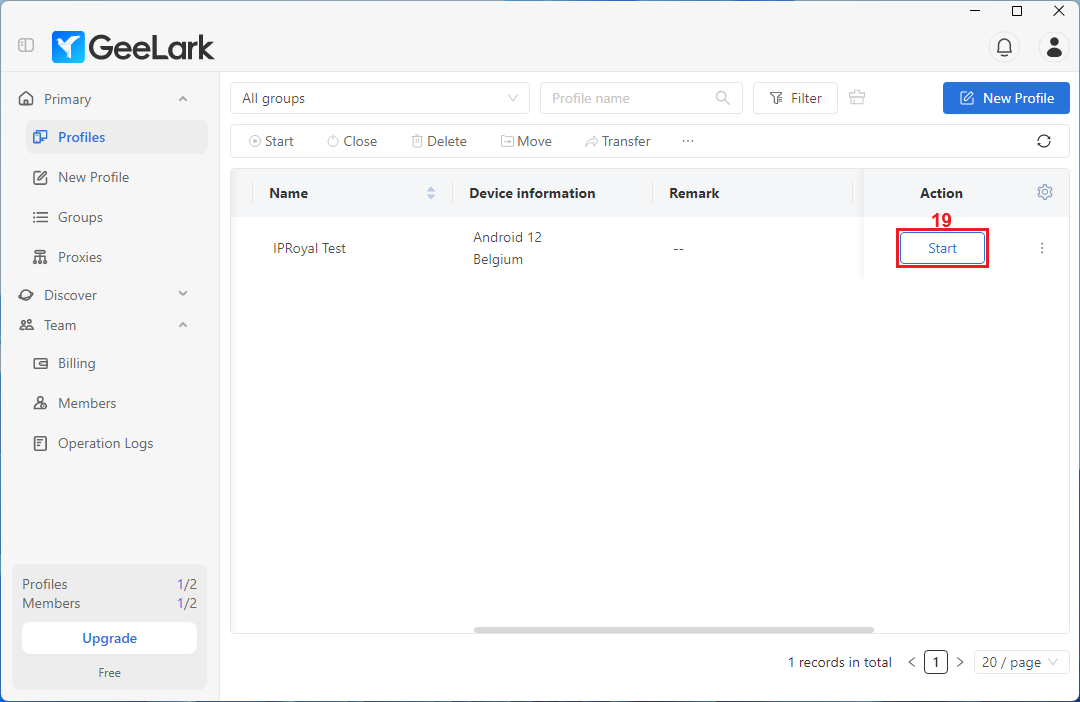 10. 现在可以启动您的配置文件了。点击 启动 (19) 按钮。