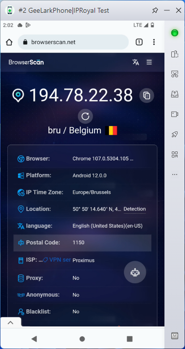 11. 这将启动您的云手机。您可以使用其浏览器访问BrowserScan或任何类似的网站,并确保您的配置文件和指纹正常工作。