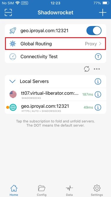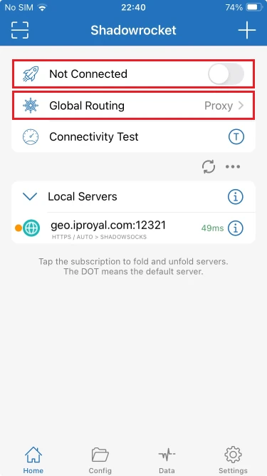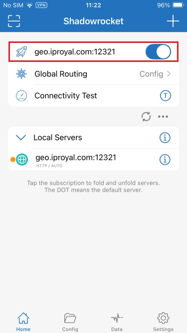 现在您就可以开始在 Shadowrocket 中使用代理啦!如果使用我们的代理仍然无法连接到互联网,请通过 IPRoyal.com 在线聊天工具联系我们的技术支持团队!