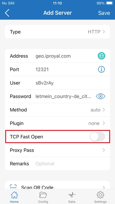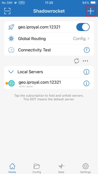 以下分步教程将指导您在 Shadowrocket 中集成 IPRoyal 代理服务器。