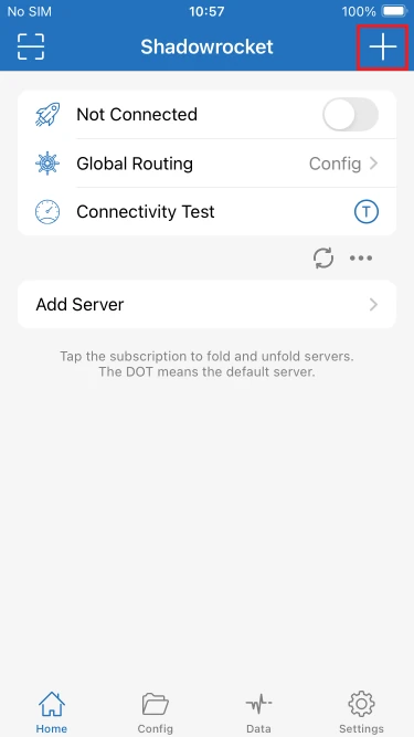 为此,请点击 Shadowrocket 应用右上角的“+”按钮添加新的本地服务器。